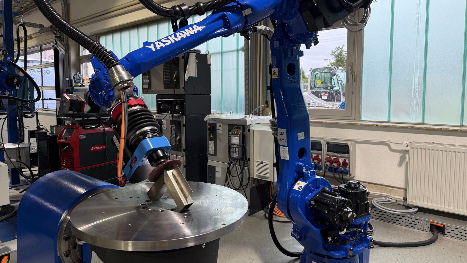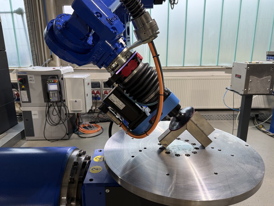Die ArcWorld Evo ist eine hochmoderne Roboterschleifanlage, die entwickelt wurde, um komplexe Bauteile automatisch und effizient von mehreren Seiten zu bearbeiten. Dank des integrierten Dreh-/Kipptisches lässt sich das Werkstück in verschiedene Positionen bringen, wodurch Anlauffarben zuverlässig entfernt und Nahtüberhöhungen präzise abgeschliffen werden können.