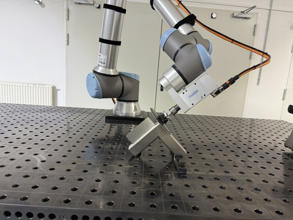 Der Universal Robots Schleifroboter basiert auf den flexiblen UR-Cobotarmen und eignet sich ideal für kleinere bis mittlere Werkstücke.