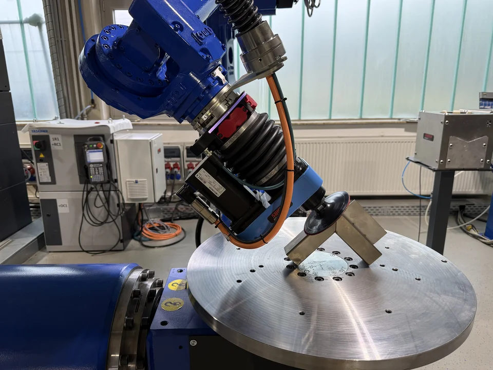 The robot grinding equipment consists of a powerful drive unit with an integrated pressure compensation module, which ensures a uniform grinding pattern.