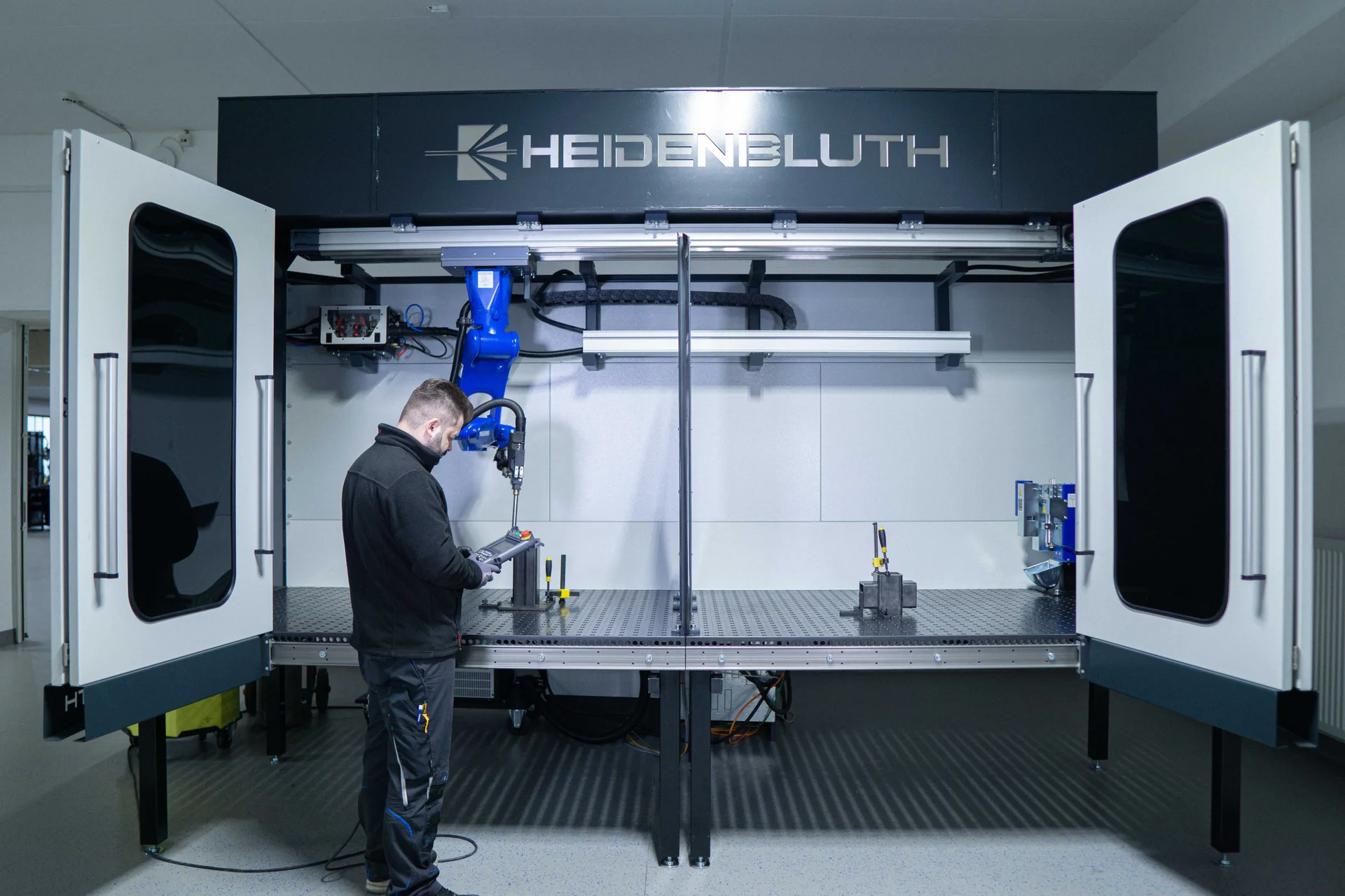 Durch die Zwei-Stationen-Lösung steigert die BigArc Ihre Produktivität deutlich. Insbesondere für kleine und mittlere Stückzahlen ist die Zelle hervorragend geeignet. Während der Roboter in einer Station schweißt, kann der Mitarbeiter die Anlage an zwei Stationen mit neuen Bauteilen bestücken. Die CE-Erklärung ist vom Start an mit dabei und bietet somit den optimalen Schutz für Ihre Mitarbeiter und Ihr Umfeld. Ein weiterer Vorteil ist, dass man die sicherheitstechnisch abgefragte Zwischentrennwand entnehmen kann und somit große Baugruppen fertigen kann. Mehr Infos zur BigArc finden Sie hier.