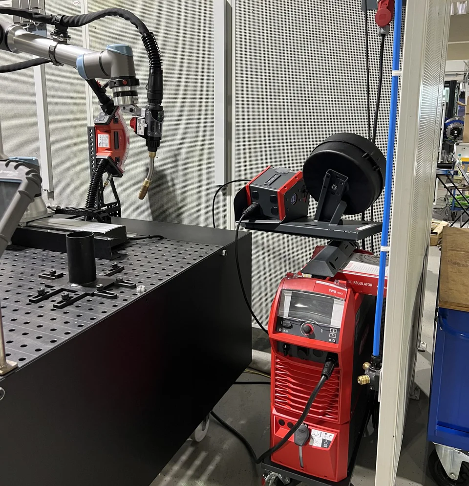 Mit unserem Weldcontrol Paket kann man dies auch am ganz einfach zu programmierenden Cobot von Universal Robot einsetzen. Dadurch lassen sich auch kleine Stückzahlen schnell programmieren und mit minimalen Verzug schweißen.
