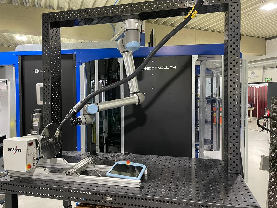 Wir stellen vor: Der hängende Cobot für mehr Flexibilität auf einem freien Schweißtisch.