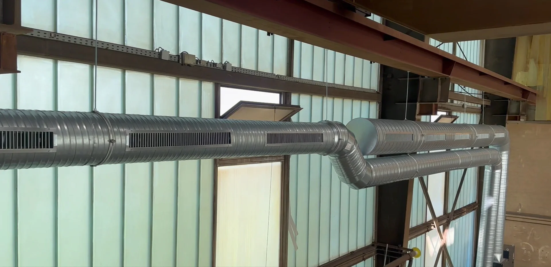Eine Rohrleitung saugt dabei die schadstoffhaltige Luft in ca. vier Meter Höhe an. Nach der Reinigung durch die Filteranlage FILTERCUBE wird die gereinigte Luft auf der gegenüberliegenden Seite über Lüftungsgitter oder Düsen dem Arbeitsbereich wieder zugeführt. Die so entstehende Luftströmung sorgt dafür, dass Schadstoffe kontinuierlich erfasst werden und verbessert so das Raumklima nachhaltig.