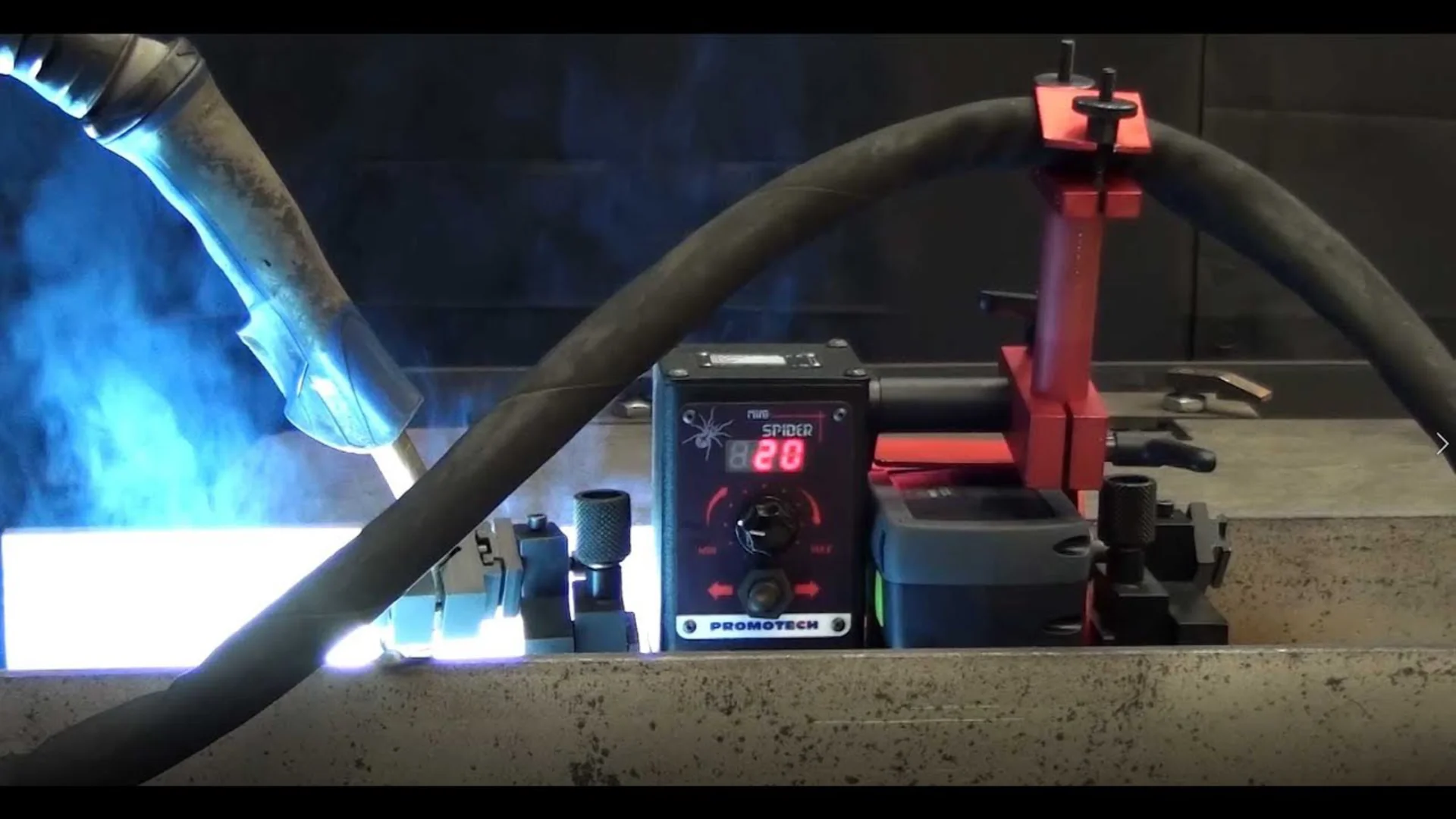 Mini Spider ist ein batteriebetriebener Schweißtraktor für das kontinuierliche Schweißen mit MIG/MAG-Brennern. Der Brenner kann leicht von einer Seite zur anderen gewechselt werden. Der Allradantrieb mit magnetischer Traktion und Rückführkreis sorgt für eine sehr effektive Geschwindigkeitsstabilisierung. Konstante, kontinuierliche und reproduzierbare Bewegungsgeschwindigkeit ermöglicht eine Grobstichgeometrie, die den geforderten Spezifikationen entspricht, was die Schweißkosten senkt und den Zusatzwerkstoffverbrauch deutlich reduziert.